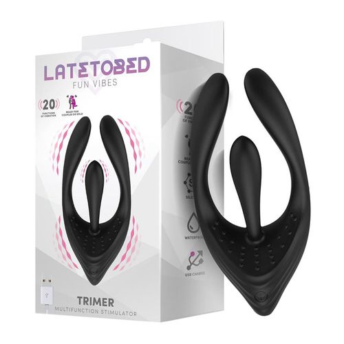 TRIMER to wielofunkcyjny stymulator przeznaczony do zabaw z partnerem lub solo. Specjalnie zaprojektowany masażer w kształcie litery "U" idealnie sprawdzi się do masażu całego ciała kobiety i mężczyzny. Trimer możesz wykorzystać podczas stosunku, masażu penisa, jąder, łechtaczki, pochwy anusa a także sutków. Wszystko po to by dać Ci aż 8 kombinacji z użyciem wibratora, które doprowadzą Cię do niesamowitych doznań.