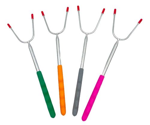 Komplet 4 widelców teleskopowych do pieczenia kiełbasek na ognisku.