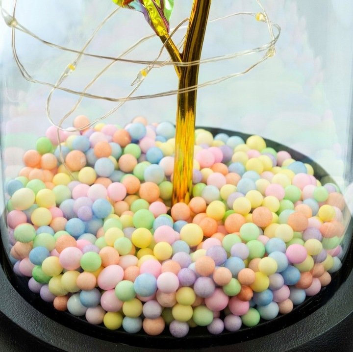 ✅ Szklane naczynie – transparentne, chroni różę przed kurzem i uszkodzeniami, umożliwiając podziwianie jej z każdej strony