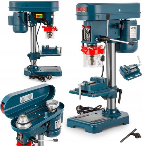 W skład zestawu wchodzą wszystkie niezbędne elementy: wiertarka kolumnowa, uchwyt wiertarski 16mm, dodatkowy stolik, imadło, klucze, śruby montażowe oraz plastikowa osłona. Wystarczy rozłożyć i rozpocząć pracę!