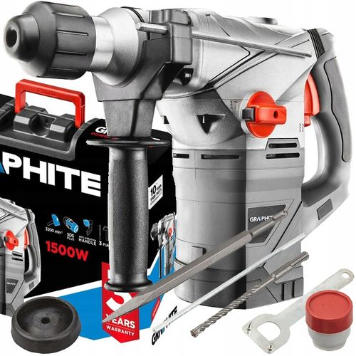 Młot udarowy SDS+ 1500W marki Graphite to dzieło inżynierskiej maestrii. Mocny udar pneumatyczny o energii 4,5 J zapewnia niesamowitą wydajność przy pracach z betonem, cegłą i kamieniem. Trzy funkcje w jednym: wiercenie, wiercenie z udarem i kucie, czynią to narzędzie niezwykle wszechstronnym.