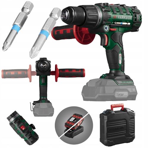 Wiertarko-wkrętarka dostarczana jest w praktycznej walizce do przechowywania i transportu. Posiada również praktyczny klips do paska z funkcją otwieracza do butelek, zwiększając jej wszechstronność. Kompatybilność ze wszystkimi akumulatorami serii PARKSIDE X 20 V Team zapewnia elastyczność i mobilność podczas pracy.