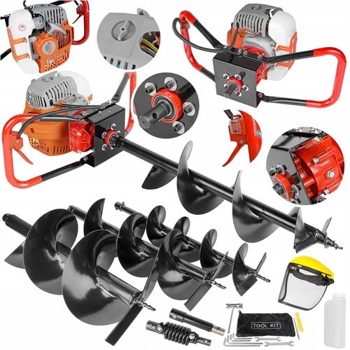 1✔️Mocny silnik dwusuwowy o pojemności 52cm³ oraz tytanowa przekładnia napędowa gwarantujące wysoką wydajność i moc wiercenia.