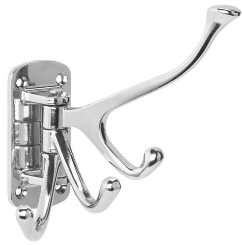 Cztery haczyki można regulować w płaszczyźnie bocznej, robiąc w ten sposób miejsce dla większych ubrań. Wieszak jest wykonany z lakierowanego proszkowo stopu cynkowego w kolorze chromu i sprzedawany w zestawie z wkrętami montażowymi.