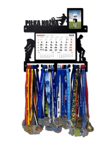 Wieszak na medale PIŁKA NOŻNA z kalendarzem i ramką na zdjęcie imię 386.1