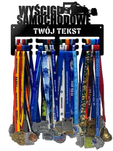 Wieszak na medale WYŚCIGI SAMOCHODOWE twoje imię dowolny tekst 144.1