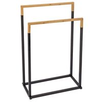 Wieszak łazienkowy stojący czarno-brązowy na ręczniki to funkcjonalny i stylowy element wyposażenia łazienki.