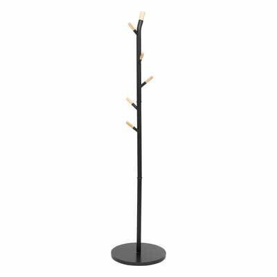 Wieszak stojący z 6 haczykami to funkcjonalne i stylowe rozwiązanie do przechowywania ubrań w przedpokoju. Wykonany z metalu, wieszak posiada maksymalne obciążenie wynoszące 25 kg, co czyni go solidnym i trwałym akcesorium. Haczyki zakończone drewnianą wstawką z sosny nadają wieszakowi atrakcyjny wygląd, łącząc w sobie elegancję i naturalny urok drewna.