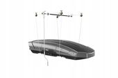 Ten praktyczny system sufitowy pozwala na wygodne przechowywanie różnorodnych przedmiotów o dużych gabarytach, takich jak boksy dachowe, kajaki, deski surfingowe i wiele innych. Wyposażony w kołowrotek i długą, demontowalną dźwignię, umożliwia łatwe podnoszenie i opuszczanie ładunku, zapewniając maksymalny komfort użytkowania.