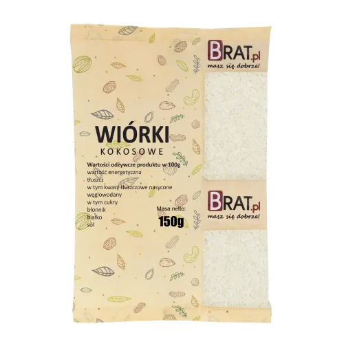 Opakowanie zawiera 150 g wiórek kokosowych.