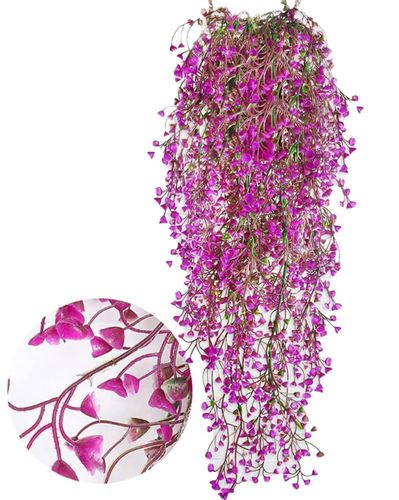 ✅Oferujemy Państwu nowe sztuczne kwiaty pnące wierzba dzwonkowa w zestawie dwóch sztuk, które stanowią doskonały wybór dla wszystkich, pragnących dodać odrobinę elegancji i świeżości do swojego otoczenia. Każda gałązka ma długość 78 cm i składa się z pięknych, fioletowych kwiatów oraz zielonych łodyg, co sprawia, że wyglądają one niezwykle realistycznie. Te wysokiej jakości kwiaty wykonane są z trwałego tworzywa sztucznego, co zapewnia ich długowieczność i doskonały wygląd przez cały rok.