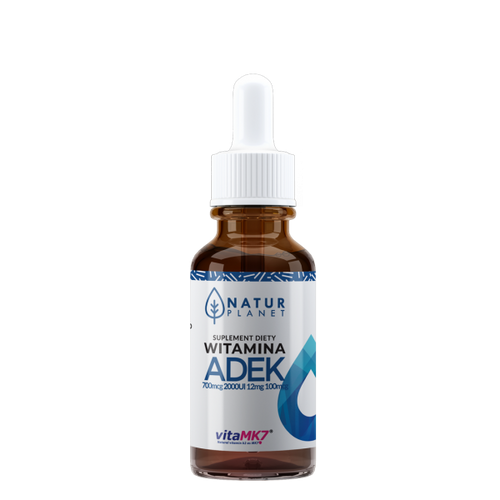Suplement diety ADEK w formie kropli to połącznie czterech naturalnych witamin rozpuszczalnych w tłuszczach: A,D3, E, K2 wyprodukowany z surowców najwyższej jakości.