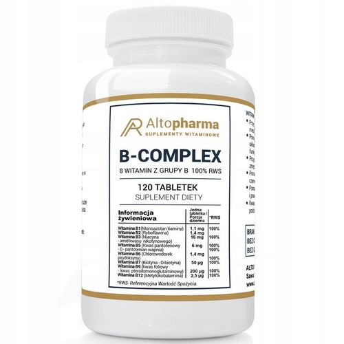 Suplement diety Altopharma® Witamina B Complex 100% RWS to wypełniona wartościowymi składnikami kompozycja 8 witamin z grupy B, które wspierają prawidłowy metabolizm energetyczny, układ nerwowy, odporność i funkcje psychiczne.