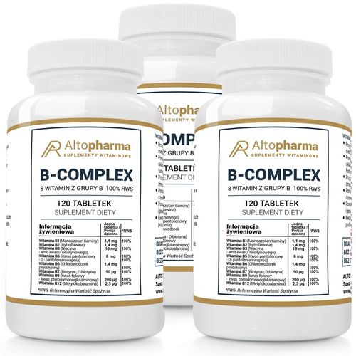 Witamina B Complex firmy Altopharma to unikalna kompozycja 8 kluczowych witamin z grupy B, zapewniająca 100% dziennego zapotrzebowania dla organizmu. Dzięki temu produktowi możesz zadbać o swoje zdrowie w sposób wygodny i efektywny.