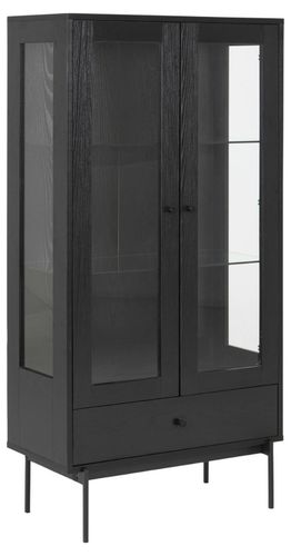 Witryna Angus czarna oferuje dużo miejsca do przechowywania. Wyposażona jest w dwie eleganckie szklane półki, które nie tylko pomieszczą książki, ale także umożliwią atrakcyjną ekspozycję zastawy, pamiątek oraz zdjęć. W każdej półce możesz umieścić przedmioty o maksymalnym obciążeniu 9 kg, co czyni ją niezwykle funkcjonalną. Dodatkowo, pod szafką znajdziesz szufladę, idealną do przechowywania rzeczy, których nie chcesz eksponować, takich jak złożone obrusy czy sztućce.