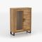 Korpus mebla został wykonany z płyty meblowej pokrytej naturalnym dębowym fornirem w grubości 19mm. Wewnętrzne półki i przegrody wykonane są z płyty laminowanej. Obciążenie dopuszczalne półki wynosi 15kg.