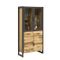 Wspaniała witryna dębowa do salonu i jadalni. Solidnie wykonana i wykończona, wyposażona w dwie szklane półki mieszczące się za przeszklonymi drzwiami oraz trzy pojemne szuflady, które zostały wyposażone w prowadnice z cichym domykiem.