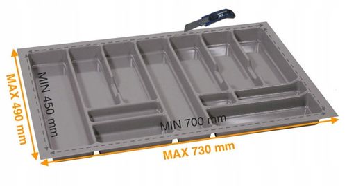 Wkład do szuflad Organizer PRO 80 to nowoczesne rozwiązanie, które pomoże w uporządkowaniu Twojej kuchni lub biura. Jego wymiary 730x490 mm idealnie pasują do szafek o prowadnicach 500 mm, a stylowy kolor metaliczny doda elegancji każdemu wnętrzu.