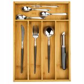 Ten wysokiej jakości organizer na sztućce GAEL z naturalnego bambusa wyróżnia się nie tylko eleganckim, naturalnym wyglądem, ale także przemyślaną konstrukcją. Posiada 5 dedykowanych przegródek, które idealnie separują widelce, noże, łyżki i akcesoria, zapewniając łatwy dostęp i utrzymując wszystko w idealnym porządku na co dzień.
