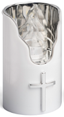 Dekoracyjny wkład do zniczy zasilany bateriami. Pasuje do większości zniczy szklanych lub plastikowych. Daje przyjemne światło, a bogaty wybór kolorów umożliwia stworzenie ciekawej iluminacji. Jego srebrne dodatki nadają mu ekskluzywny wygląd.