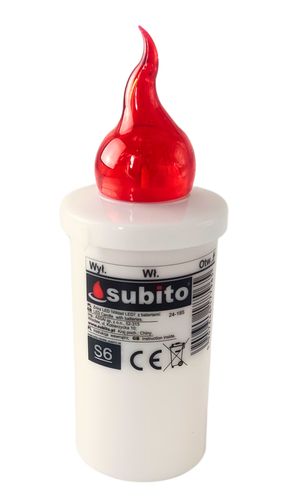 Klasyczny wkład LED do zniczy marki Subito zasilany bateriami R6. Pasuje do większości zniczy szklanych, plastikowych bądź różnego rodzaju kapliczek i latarenek. Wkład LED daje przyjemne światło, a bogaty wybór kolorów umożliwia stworzenie ciekawej iluminacji.