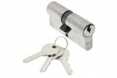 Wkładka bębenkowa dwustronna w kolorze nikiel, w zestawie 3 klucze i śruba do montażu.