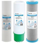 Ten wysokiej jakości zestaw wkładów UST-M do filtra wody 3-stopniowego wyróżnia się precyzyjną konstrukcją i niezawodnymi materiałami, które skutecznie chronią przed zanieczyszczeniami. Zawiera filtr piankowy 10" o dokładności 20 mikron do usuwania piasku, mułu i rdzy, filtr odżelaziający 10" eliminujący związki żelaza i manganu, oraz blok węglowy 10" usuwający chlor, substancje organiczne oraz poprawiający smak i zapach wody – wszystko to zapewnia krystalicznie czystą wodę na co dzień.