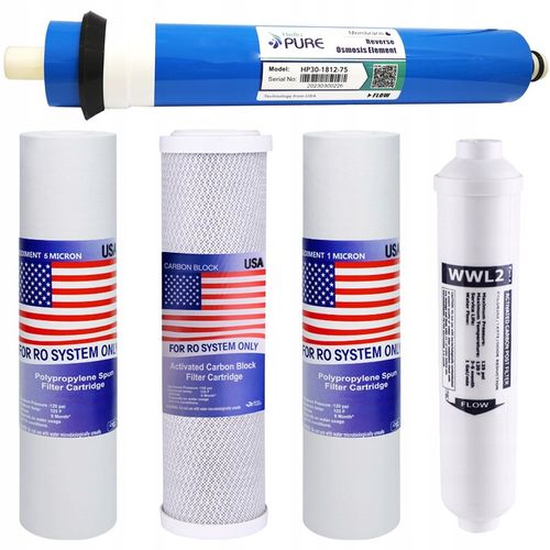 Ten kompletny zestaw wkładów RO5 wraz z membraną osmotyczną Hello Pure 75 GPD to rozwiązanie o wyjątkowej precyzji filtracji, które usuwa zanieczyszczenia mechaniczne, chemiczne i biologiczne z niezrównaną skutecznością. Wkład sedymentacyjny 5 mikronów z włókniny polipropylenowej pochłania piasek, osad, rdzę i muł, zapewniając wysoką chłonność bez spadku ciśnienia i odporność na rozwój mikroorganizmów.