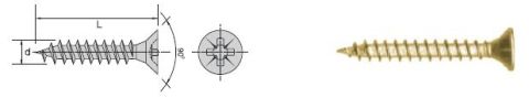 Wkręt do drewna i płyt wiórowych z łbem stożkowym płaskim ocynkowany na żółto ,