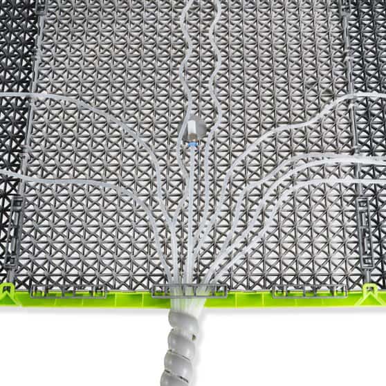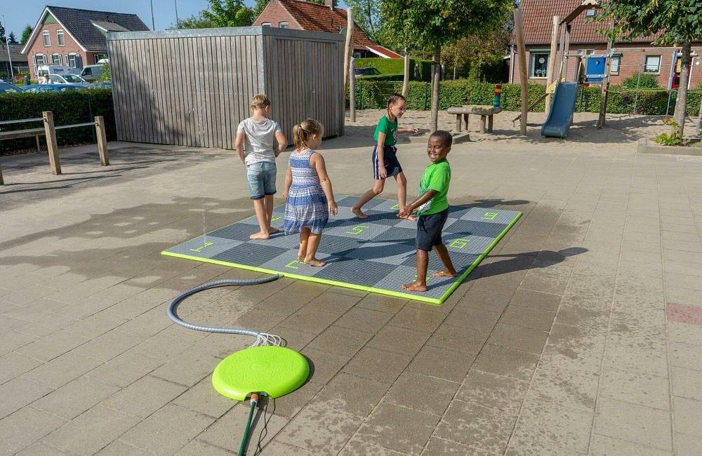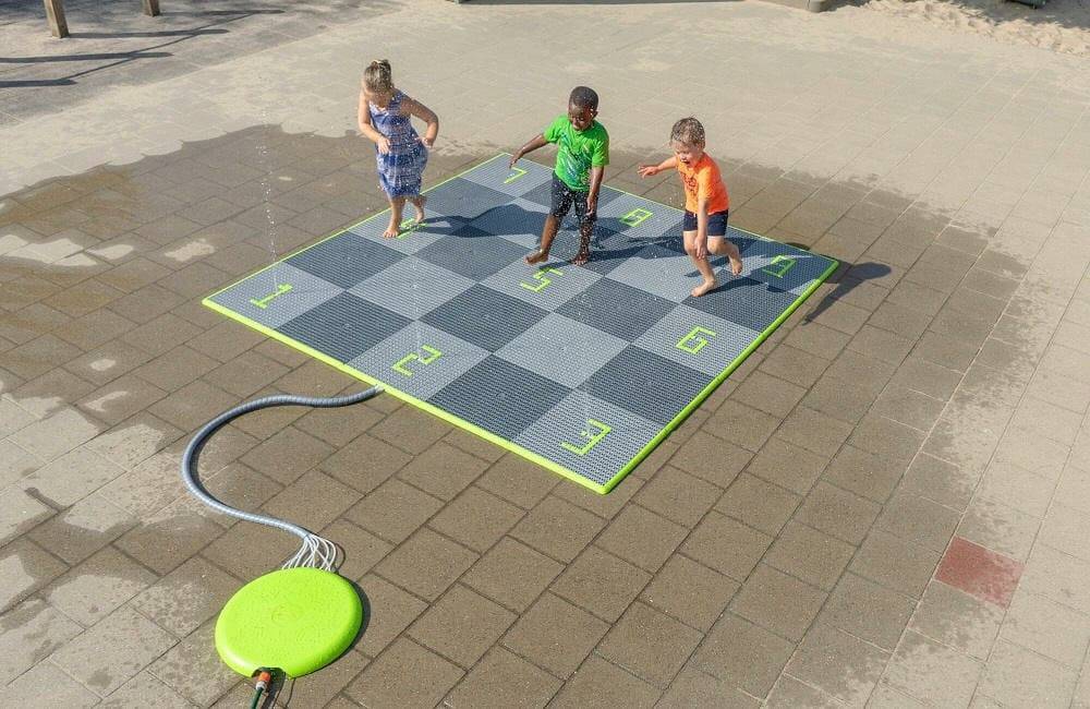 Interaktywny wodny plac zabaw do ogrodu, ma charakter wodno-edukacyjny. Jego blok sterowania obsługiwany jest ręcznie lub za pomocą aplikacji. Zestaw ma możliwość zmiany ułożenia płytek z 5 × 5 w układ „gry w klasy”. Płytki są bezpiecznymi, bo posiadają antypoślizgową fakturę. Plac zabaw wodny stworzony dla dzieci powyżej 3 lat. Zestaw posiada certyfikaty TUV, CE. Ze względu na bezpieczeństwo maluchów podczas zabawy, wszystkie płytki placu zabaw do ogrodu mają specjalną antypoślizgową powierzchnię. Również płytki zabezpieczone są obwódką, która pokrywa każdy róg płytek, żeby uniknąć urazów. Regulator ciśnienia na bloku sterowania pomaga określić wysokość strumienia, dzięki czemu nawet małe dzieciaki mogą cieszyć się zabawą na placu.