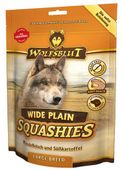 Wolfsblut Squashies to miękkie przekąski dla psów bez zbóż i glutenu, z dużą zawartością mięsa. Nie zawierają również cukru produkowanego przemysłowo, barwników, substancji zapachowych, atraktantów, wypełniaczy i konserwantów ani chemicznych przeciwutleniaczy.