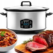 Wolnowar ten gwarantuje pełną wygodę, z dotykowym panelem LCD i automatycznym podtrzymywaniem ciepła, co pozwala na utrzymanie potraw w idealnej temperaturze przez długi czas. Jego energooszczędna konstrukcja o mocy 280W zużywa nawet do 70% mniej energii niż tradycyjne metody, umożliwiając eksplorację kulinarnych inspiracji w każdym domu, z zachowaniem pełnej kontroli i trwałości.