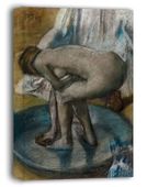 Obraz na płótnie "Kobieta kąpiąca się w płytkiej wannie" autorstwa Edgara Degasa to niezwykły element dekoracyjny, który z pewnością przyciągnie uwagę każdego miłośnika sztuki. Wymiary 30x40 cm idealnie wpasują się w różnorodne aranżacje wnętrz, dodając im elegancji i wyrafinowania. Dzięki wysokiej jakości cyfrowego druku oraz solidnemu wykonaniu, ten ekskluzywny obraz to prawdziwa uczta dla zmysłów.