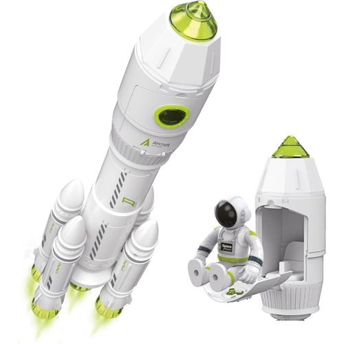 Rakieta Kosmiczna od marki Woopie. To nie jest zwykła zabawka — to kompletna, interaktywna misja kosmiczna, która angażuje zmysły, pobudza wyobraźnię i uczy poprzez zabawę. Produkt został stworzony z myślą o małych odkrywcach, którzy marzą o podboju kosmosu. Dzięki licznym funkcjom, realistycznym efektom świetlnych, dźwiękowych i szczegółowej konstrukcji, dziecko może samodzielnie przygotować statek do startu, umieścić astronautę w kapsule, uruchomić odliczanie i... odpalić silniki! Po napełnieniu rakiety zwykłą wodą z kranu i wciśnięciu przycisku, zabawka symuluje prawdziwy start: świecące silniki, realistyczne dźwięki odliczania oraz widowiskowy efekt dymu sprawiają, że cała scena wygląda niczym startujący wahadłowiec NASA! Interaktywna konsola na rakiecie uruchamia odliczanie i zapala kabinę pilota, dając dziecku pełne wrażenie, że naprawdę kontroluje misję kosmiczną. Rakieta posiada również odczepianą kapsułę z otwieraną kabiną, w której mieści się figurka astronauty. Kabinę można łatwo połączyć z rakietą lub oddzielić za pomocą prostego obrotu.