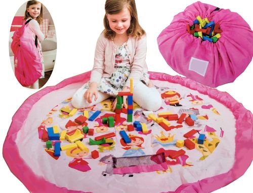 Matę rozkłada się na podłodze, a po zakończonej zabawie można szybko złożyć, co pozwala zapanować nad rozrzuconymi zabawkami. Wystarczy ściągnąć sznurek, żeby szybko zwinąć matę i zmienić w worek.