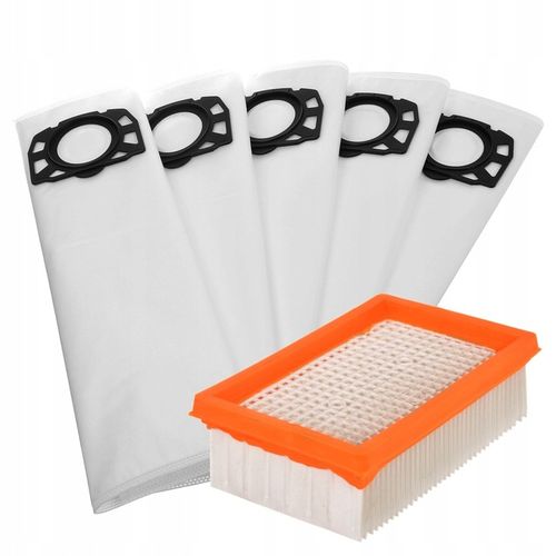 Ten komplet worków i filtra jest kompatybilny z wieloma popularnymi modelami odkurzaczy Karcher, w tym WD 4, WD 5, WD 6 P Premium i innymi. Możesz więc z łatwością znaleźć zamiennik dostosowany do Twojego sprzętu.