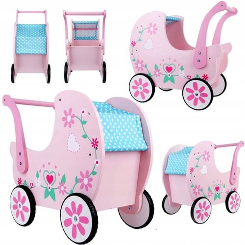 DREWNIANY WÓZEK DLA LALEK to idealna zabawka dla dzieci które zaczynają chodzić. Pomaga utrzymać równowagę, przyspiesza naukę chodzenia.
