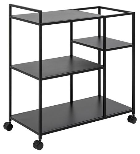 Newcasle jest wykonany z malowanego proszkowo metalu. Ten rodzaj wykończenia jest odporny na zarysowania oraz łatwy w zachowaniu czystości. Kółka i uchwyt upraszczają przestawianie wózka w dowolne miejsce, gdzie chcesz i kiedy chcesz. Natomiast cztery półki, przez swoje niesymetrycznie ułożenie, pomieszczą przedmioty o różnej wielkości.