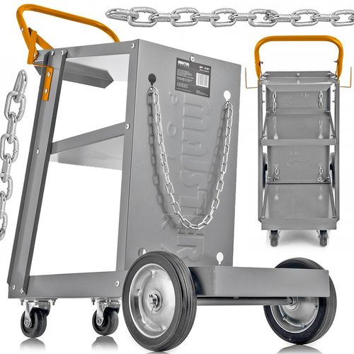 Wózek spawalniczy Majster model MP0181 od polskiej firmy Majster wyróżnia się solidną, stalową konstrukcją z grubszymi profilami giętymi na zimno, co zapewnia wyjątkową stabilność i wytrzymałość nawet pod ciężkim obciążeniem. Z maksymalnym udźwigiem 60 kg, bez problemu pomieści spawarkę MMA, MIG czy TIG wraz z butlą i akcesoriami, gwarantując niezawodne wsparcie w codziennym warsztacie.