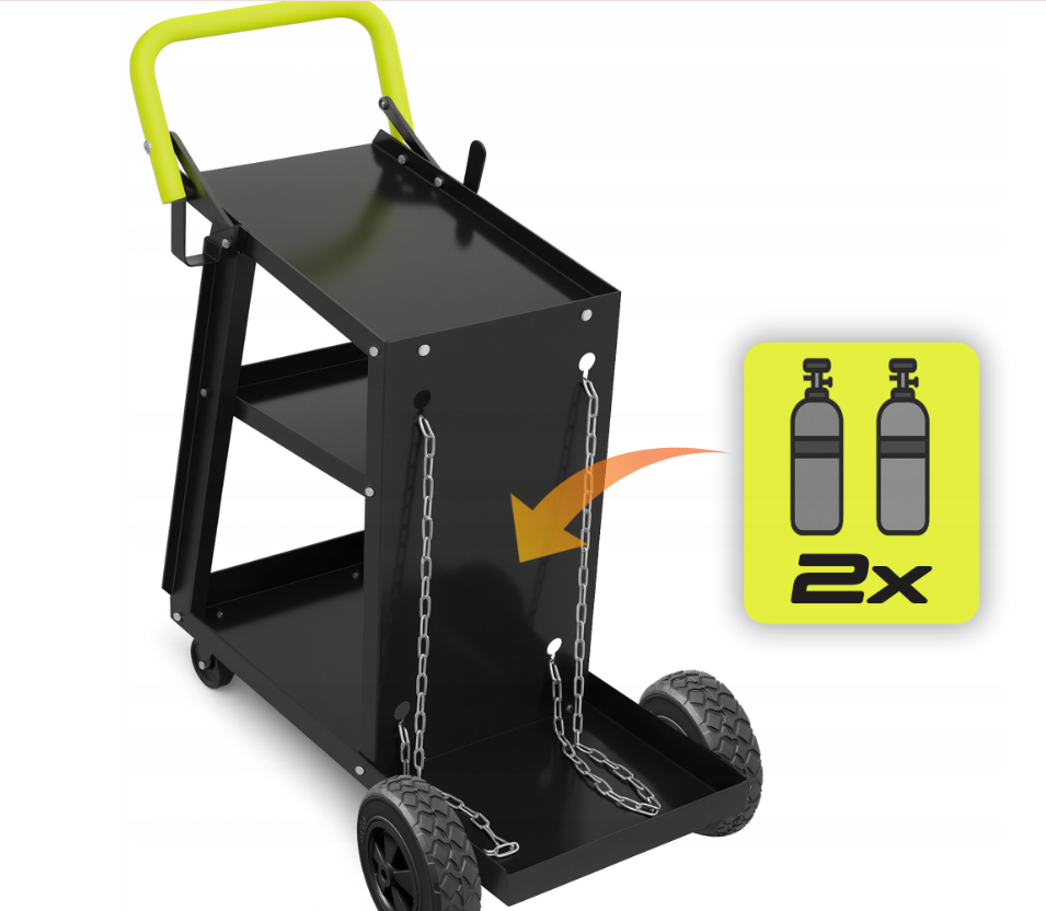 ✅ Wózek przeznaczony do przewozu spawarek wraz z butlą i akcesoriami.