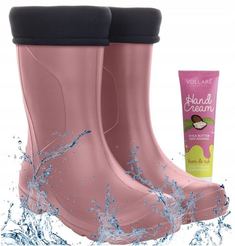Te kalosze piankowe damskie DAKOTA z gratisowym kremem do rąk wyróżniają się wyjątkową lekkością i wygodą, wykonanymi z wysokogatunkowego tworzywa EVA. Zapewniają 100% wodoodporność, co pozwala na swobodne poruszanie się w deszczu czy błocie, bez obaw o zmoknięcie stóp, gwarantując niezawodną ochronę na co dzień.