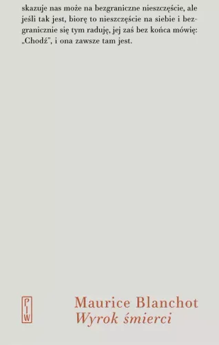 - hołdując tej zasadzie, Maurice Blanchot, jeden z wielkich samotników dwudziestowiecznej literatury, poświęcił się pisaniu. Wyrok śmierci, najsłynniejsza z jego krótkich powieści, ma pozory autobiografii, ale kiedy Blanchot pisze: