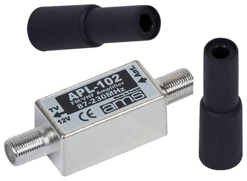 Wzmacniacz APL-102 przeznaczony jest do wzmacniania słabych sygnałów FM/DAB+ oraz DVB-T nadawanych w paśmie 87-230 MHz. Przystosowany do pracy na otwartej przestrzeni. Wzmacniacz posiada impedancję wejścia/wyjścia 75 Ω, dlatego w przypadku stosowania anten o impedancji 300 Ω należy stosować symetryzator. Zasilany jest przez wyjście napięciem 12 V podawanym kablem antenowym z zasilacza wyposażonego w separator zasilania.