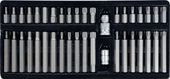 Zestaw obejmuje aż 40 różnych końcówek w najpopularniejszych rozmiarach i typach, takich jak torx, hex i spline, co zapewnia uniwersalność zastosowań w różnych dziedzinach, od serwisu samochodowego po prace budowlane i ogrodnicze. Dwie długości końcówek (30 i 75 mm) dodatkowo poszerzają zakres możliwych zastosowań.