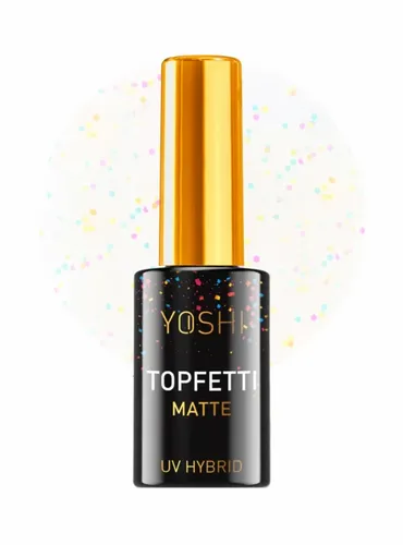 YOSHI Top hybrydowy TOPFETTI MATTE to nie tylko produkt do stylizacji paznokci, to sposób na wyrażenie siebie, Twojej osobowości oraz wyjątkowego stylu. Nie czekaj, przenieś swoje paznokcie na wyższy poziom i spraw, by każdy miał powód do uśmiechu, patrząc na Twoją niesamowitą stylizację!