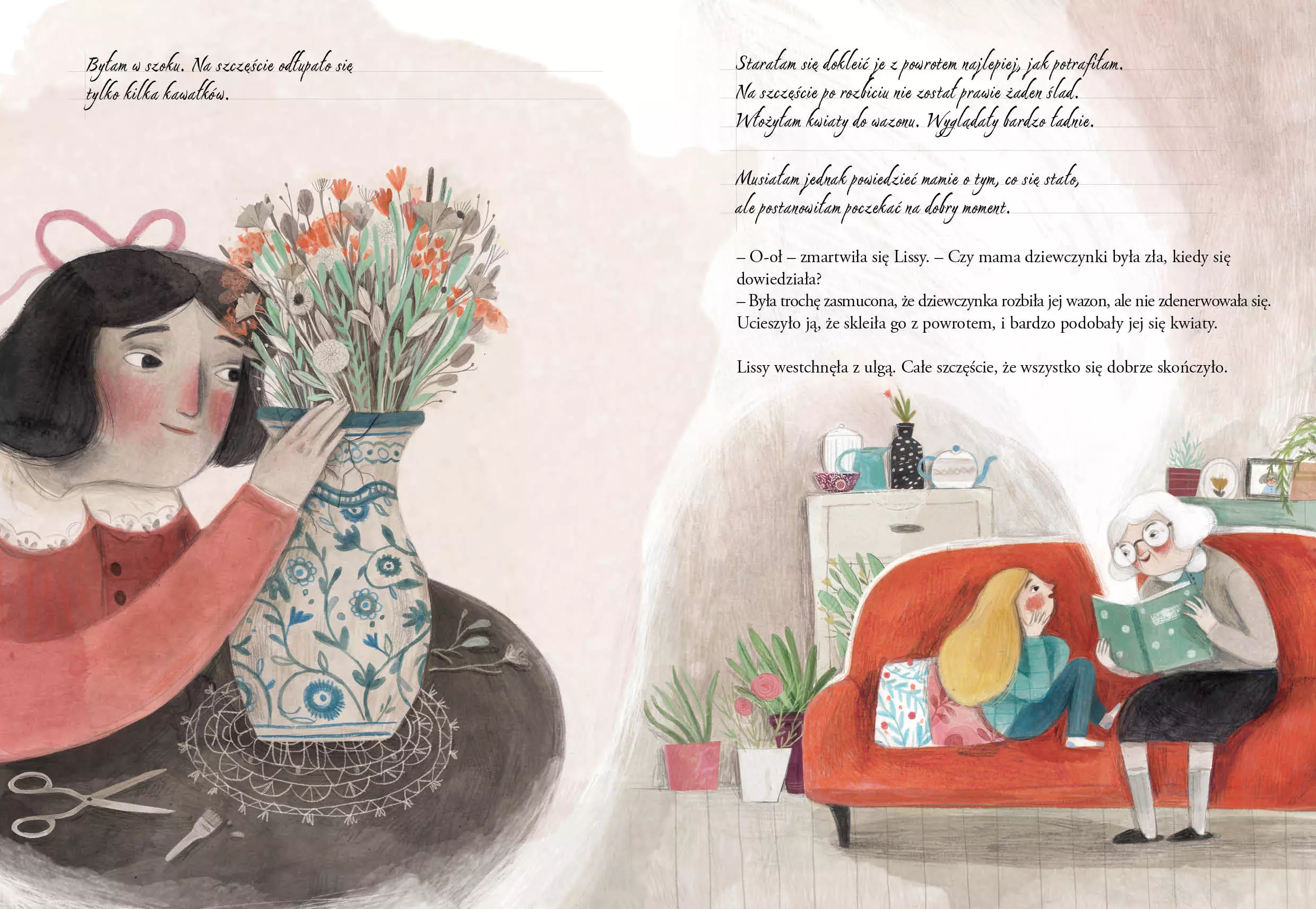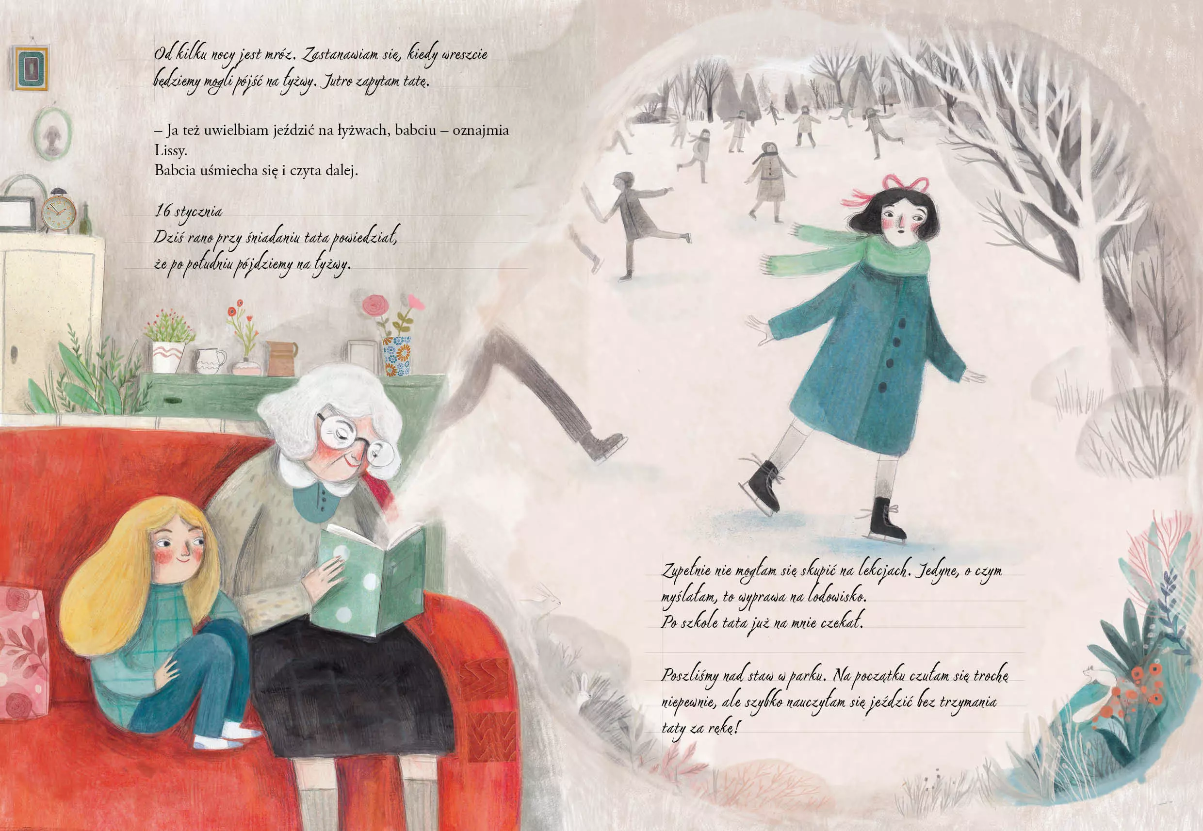 Kameralne przyjęcie urodzinowe u babci to pyszne ciasto i wspólne czytanie pamiętników. Kilkuletnia Lissy z uwagą i zaaferowaniem słucha wspaniałych przygód pewnej dziewczynki, które na szczęście zawsze dobrze się kończą. Ale czyje to przeżycia? Kim jest bohaterka tajemniczych zeszytów równiutko ustawionych na regale? Wzruszająca i ciepła opowieść o pielęgnowaniu wspomnień i przekazywaniu rodzinnych tradycji, a także o sile słowa, które może być ich nośnikiem i o pięknej relacji babci i wnuczki.
