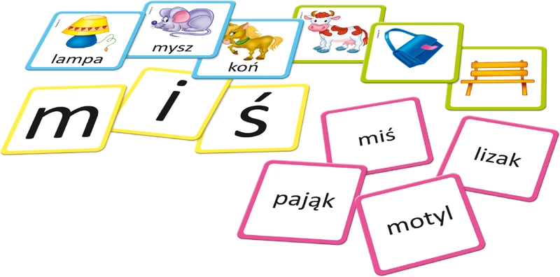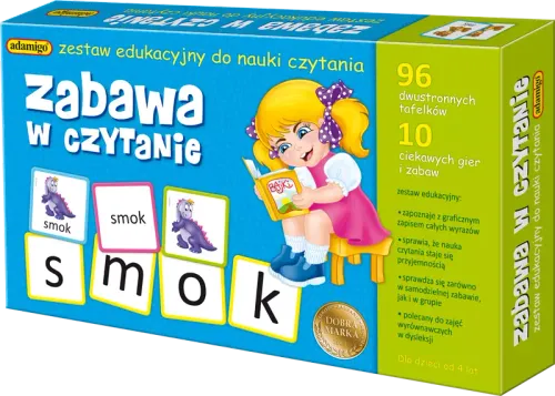 Podczas gry dzieci zapoznają się z graficznym zapisem całych wyrazów, kojarząc je z obrazkiem przedstawiającym przedmioty i postacie. Atrakcyjna forma zabawy zachęca dziecko do analizowania zapisu graficznego i wyodrębniania liter, a potem do tworzenia z nich nowych wyrazów. Metody analityczno-syntetyczne, na podstawie których powstał zestaw edukacyjny, uchodzą za najskuteczniejsze w nauce czytania. Cztery grupy kafelków, które rozróżnione są kolorem ramek, można wykorzystywać na wiele sposobów. W instrukcji znajduje się opis dziesięciu gier i zabaw, które sprawią, że nauka czytania stanie się fascynującą przygodą. Zabawa w większej grupie dzieci pozwoli na wprowadzenie elementu szlachetnej rywalizacji. Zestaw świetnie sprawdza się także podczas zabawy z jednym dzieckiem.