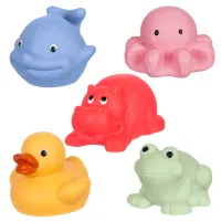Każde ze zwierzątek unosi się na wodzie, jest łatwe do chwytania i trzymania w małych rączkach. Zabawki są miękkie, przyjemne w dotyku oraz nadają się do ściskania, co pozytywnie wpływa na rozwój małej motoryki. Ich delikatne, pastelowe barwy zachęcają do zabawy i wprowadzają do łazienki modny akcent.