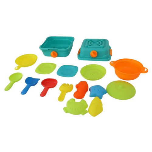 Kreatywny zestaw kuchenny do piaskownicy, który pozwala dzieciom na tworzenie „piaskowych potraw” i odgrywanie ról. Idealny do wspólnej zabawy rozwijającej wyobraźnię i zdolności manualne.