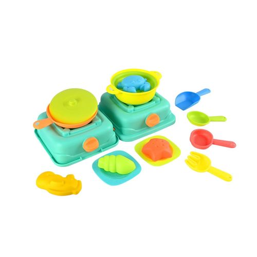 Kreatywny zestaw kuchenny do piaskownicy, który pozwala dzieciom na tworzenie „piaskowych potraw” i odgrywanie ról. Idealny do wspólnej zabawy rozwijającej wyobraźnię i zdolności manualne.